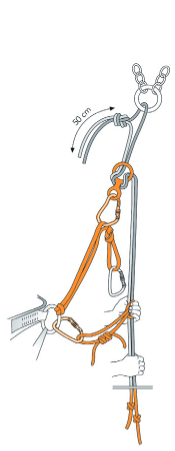 Variante 2 : Laisser l’élève installer sa corde de rappel, faire son nœud et installer sa longe et son descendeur